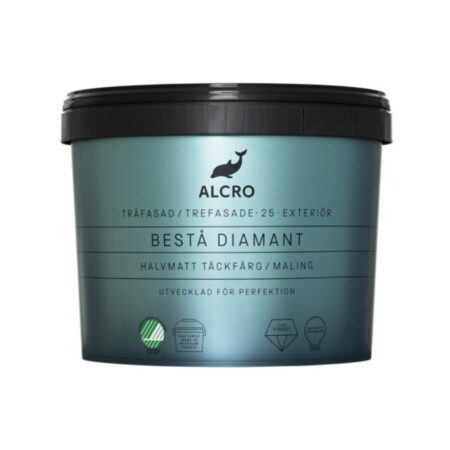 Bestå Diamant är vår bästa färg för träfasader, designad för att hålla glans och kulör samt motstå smuts och svartmögel. Idealisk för de som söker högsta kvalitet och långvarigt skydd.